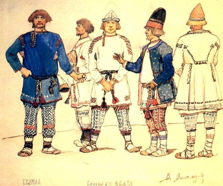 Wir bieten Ihnen eine handgefertigte Reproduktion auf Leinwand des berühmten Kunstwerks 'Holz und Berendeys Jungs' von Viktor Vasnetsov, aus dem Reproduktionsmuseum.