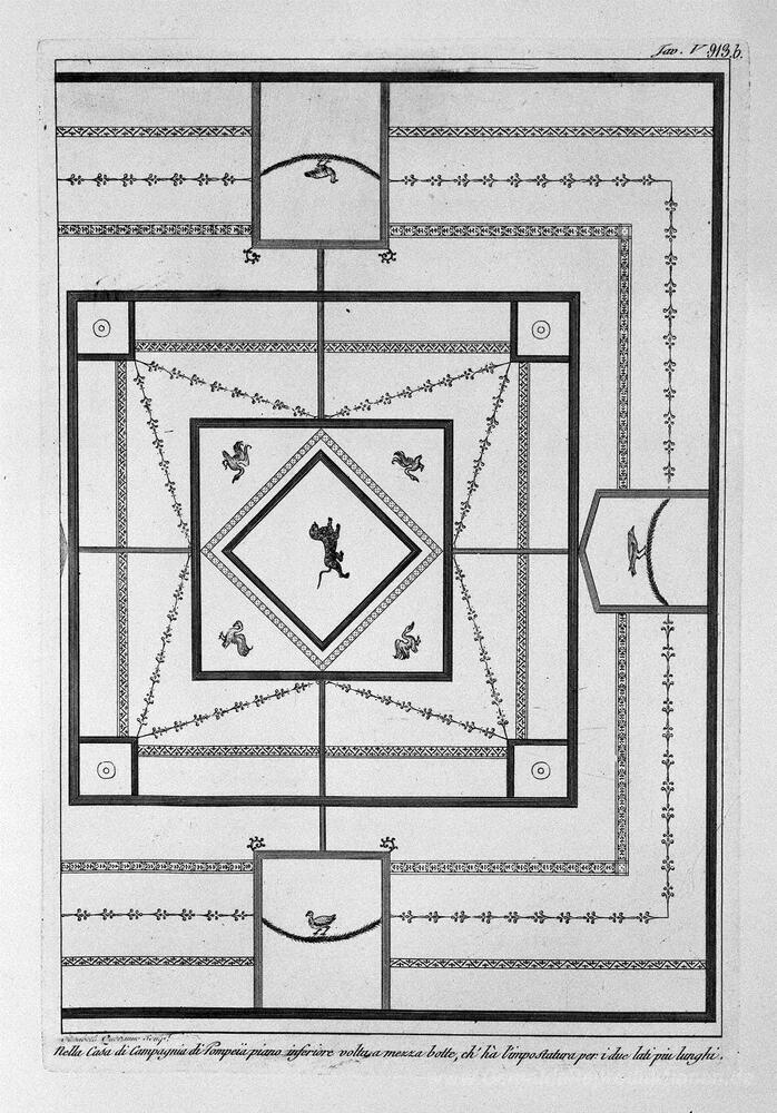 Wir bieten Ihnen eine handgefertigte Reproduktion auf Leinwand des berühmten Kunstwerks 'Im Haus von Pompeji, Obergeschoss Wand kurzen dell`Antistufa' von Giovanni Battista Piranesi, aus dem Reproduktionsmuseum.