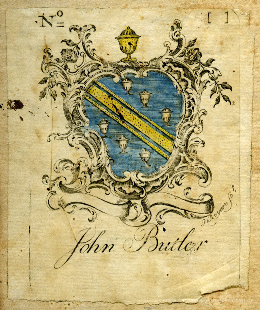 Wir bieten Ihnen eine handgefertigte Reproduktion auf Leinwand des berühmten Kunstwerks 'John Butler Bookplate' von Paul Revere, aus dem Reproduktionsmuseum.