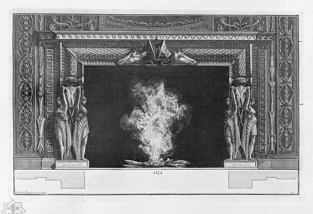 Wir bieten Ihnen eine handgefertigte Reproduktion auf Leinwand des berühmten Kunstwerks 'Kamin: auf jeder Seite zwei stehenden Figuren, einer nackten und' von Giovanni Battista Piranesi, aus dem Reproduktionsmuseum.