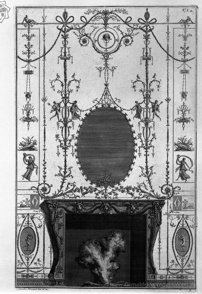 Wir bieten Ihnen eine handgefertigte Reproduktion auf Leinwand des berühmten Kunstwerks 'Kamin: im Fries der Medusa Heads 3 Füllhörnern durch die Seiten ' von Giovanni Battista Piranesi, aus dem Reproduktionsmuseum.