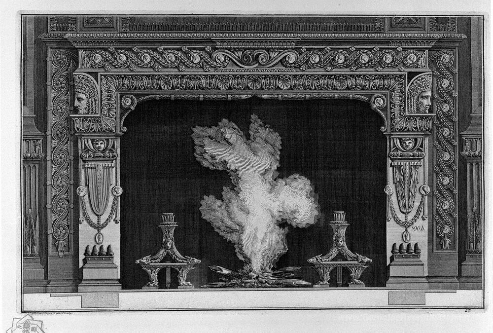 Wir bieten Ihnen eine handgefertigte Reproduktion auf Leinwand des berühmten Kunstwerks 'Kamin mit Kranz Fries Antragsteller und Kameen' von Giovanni Battista Piranesi, aus dem Reproduktionsmuseum.