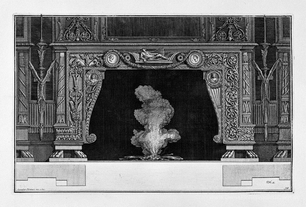 Wir bieten Ihnen eine handgefertigte Reproduktion auf Leinwand des berühmten Kunstwerks 'Kamin: zwei Medaillen im Fries der bekränzt einer Figur auf eine' von Giovanni Battista Piranesi, aus dem Reproduktionsmuseum.