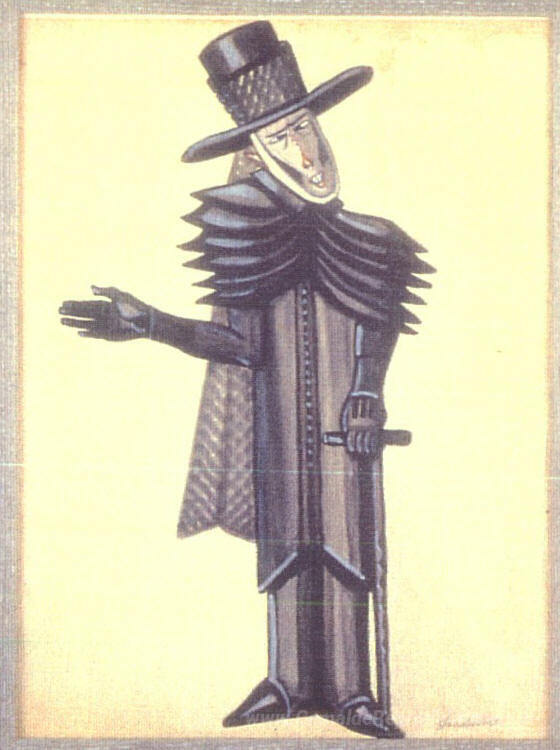 Wir bieten Ihnen eine handgefertigte Reproduktion auf Leinwand des berühmten Kunstwerks 'Kostümentwurf für Dickens Christmas Bells' von Serge Sudeikin, aus dem Reproduktionsmuseum.