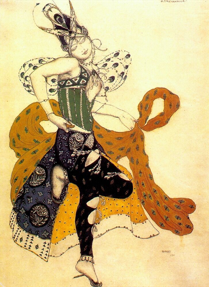 Wir bieten Ihnen eine handgefertigte Reproduktion auf Leinwand des berühmten Kunstwerks 'La peri Natasha Trouhanova als Peri' von Leon Bakst, aus dem Reproduktionsmuseum.