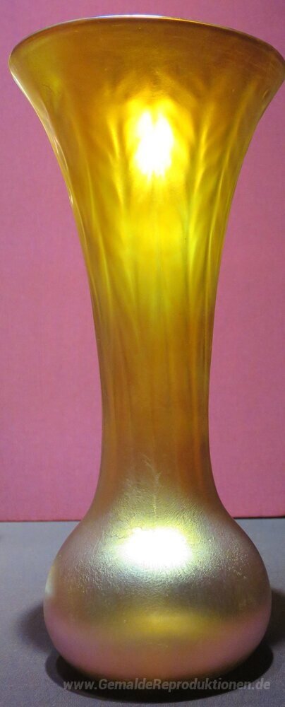 Wir bieten Ihnen eine handgefertigte Reproduktion auf Leinwand des berühmten Kunstwerks 'Langhals Glasvase' von Louis Comfort Tiffany, aus dem Reproduktionsmuseum.
