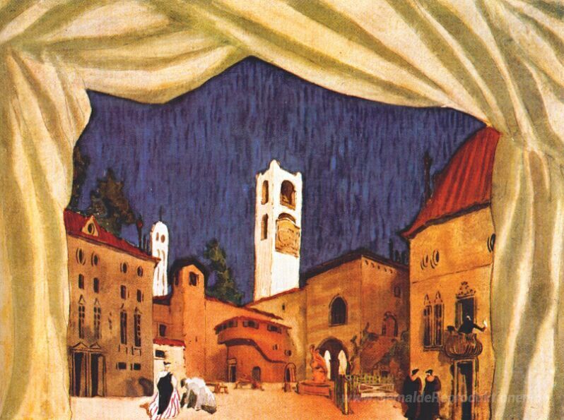 Wir bieten Ihnen eine handgefertigte Reproduktion auf Leinwand des berühmten Kunstwerks '"Les femmes de bonne humeur" - Set-Design' von Leon Bakst, aus dem Reproduktionsmuseum.