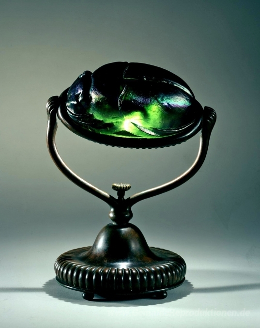 Wir bieten Ihnen eine handgefertigte Reproduktion auf Leinwand des berühmten Kunstwerks 'Leseleuchte. Scarab Design' von Louis Comfort Tiffany, aus dem Reproduktionsmuseum.