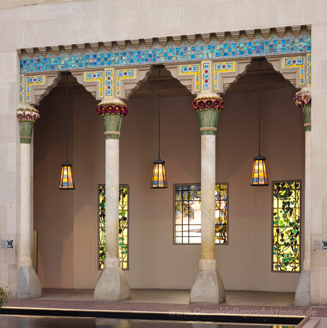 Wir bieten Ihnen eine handgefertigte Reproduktion auf Leinwand des berühmten Kunstwerks 'Loggia aus Laurelton Hall, Oyster Bay, New York' von Louis Comfort Tiffany, aus dem Reproduktionsmuseum.