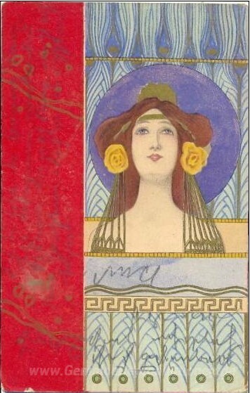 Wir bieten Ihnen eine handgefertigte Reproduktion auf Leinwand des berühmten Kunstwerks 'Mädchen Gesichter mit rotem Rand' von Raphael Kirchner, aus dem Reproduktionsmuseum.