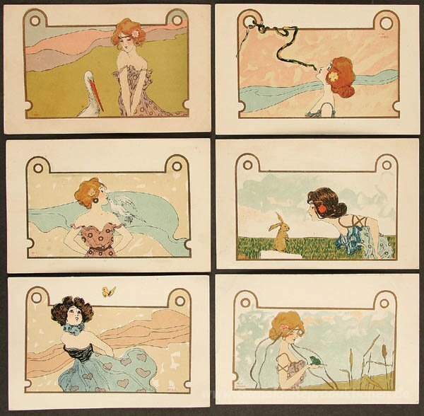Wir bieten Ihnen eine handgefertigte Reproduktion auf Leinwand des berühmten Kunstwerks 'Mädchen mit Tieren' von Raphael Kirchner, aus dem Reproduktionsmuseum.
