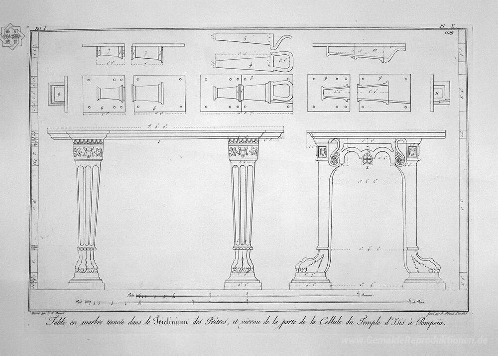 Wir bieten Ihnen eine handgefertigte Reproduktion auf Leinwand des berühmten Kunstwerks 'Marmortisch in der triclinium der Priester gefunden, und schraub' von Giovanni Battista Piranesi, aus dem Reproduktionsmuseum.