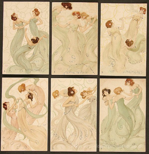 Wir bieten Ihnen eine handgefertigte Reproduktion auf Leinwand des berühmten Kunstwerks 'Mayflyes' von Raphael Kirchner, aus dem Reproduktionsmuseum.
