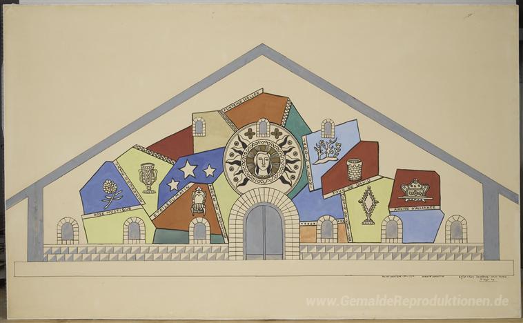 Wir bieten Ihnen eine handgefertigte Reproduktion auf Leinwand des berühmten Kunstwerks 'Modell für das Mosaik der Kirche Unserer Lieben Frau aller Gnade' von Fernand Leger, aus dem Reproduktionsmuseum.