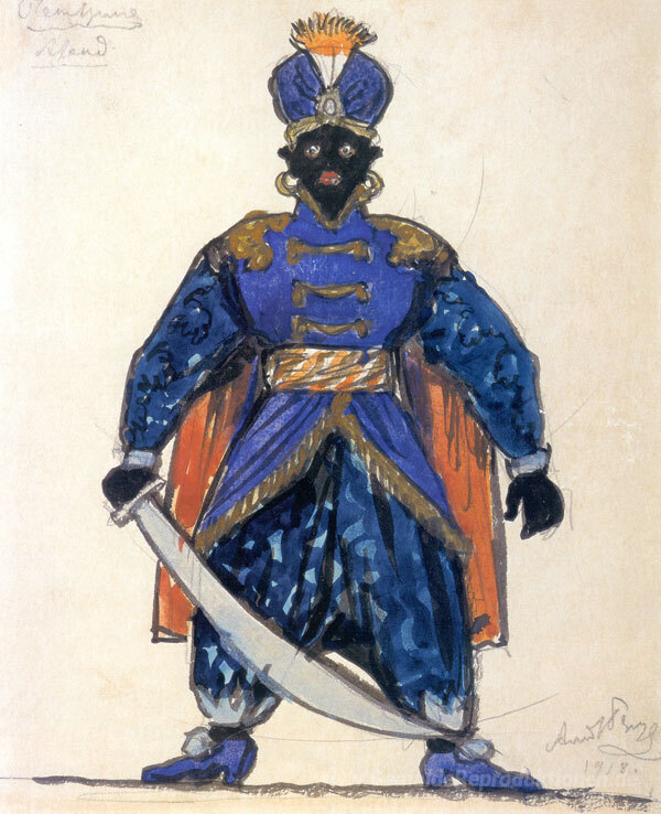 Wir bieten Ihnen eine handgefertigte Reproduktion auf Leinwand des berühmten Kunstwerks 'Mohr. Kostümdesign' von Alexandre Benois, aus dem Reproduktionsmuseum.
