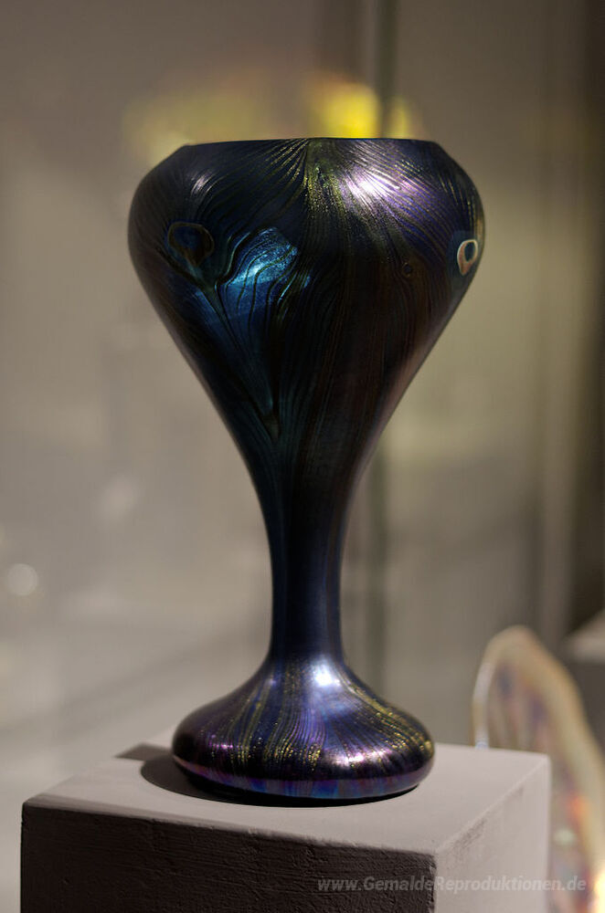 Wir bieten Ihnen eine handgefertigte Reproduktion auf Leinwand des berühmten Kunstwerks 'Peacock dekorative Vase' von Louis Comfort Tiffany, aus dem Reproduktionsmuseum.