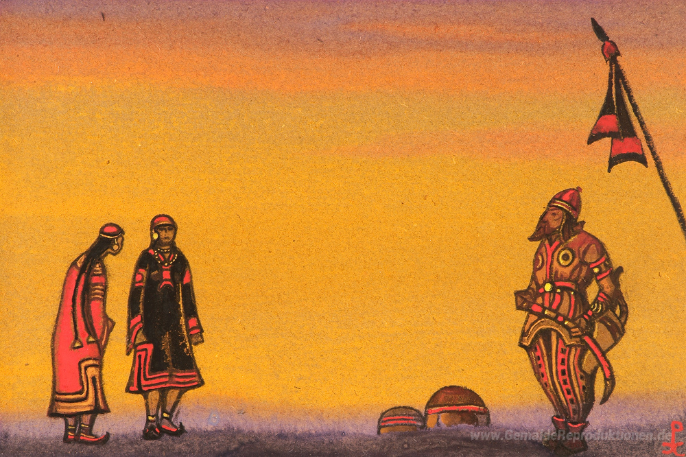 Wir bieten Ihnen eine handgefertigte Reproduktion auf Leinwand des berühmten Kunstwerks 'Polovets und Mädchen' von Nicholas Roerich, aus dem Reproduktionsmuseum.
