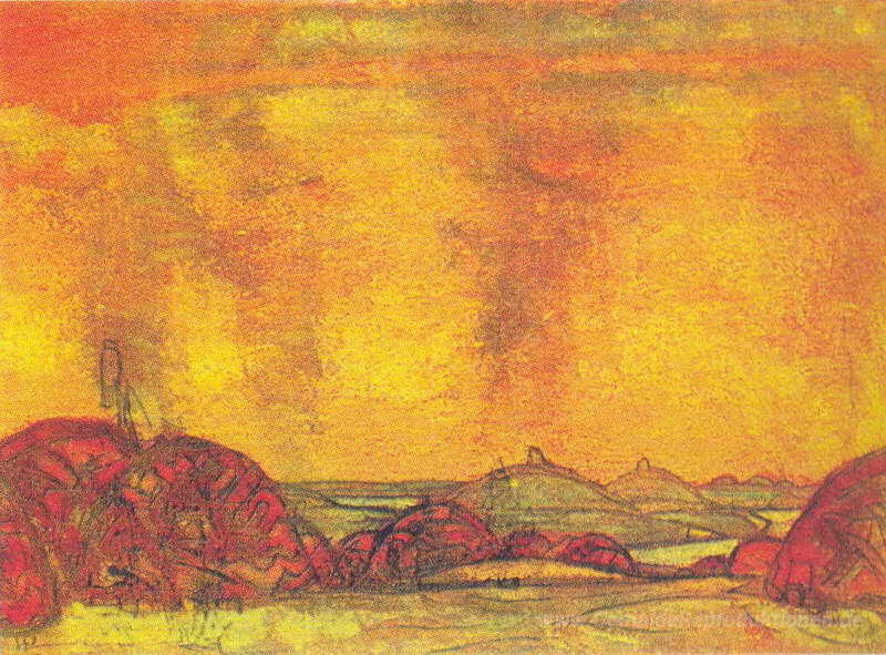 Wir bieten Ihnen eine handgefertigte Reproduktion auf Leinwand des berühmten Kunstwerks 'Polowetzer Lager' von Nicholas Roerich, aus dem Reproduktionsmuseum.