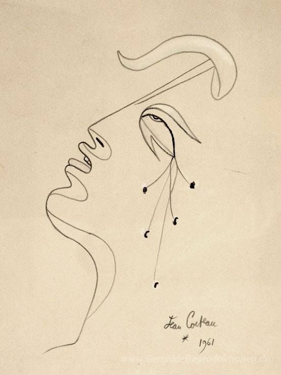 Wir bieten Ihnen eine handgefertigte Reproduktion auf Leinwand des berühmten Kunstwerks 'Profil' von Jean Cocteau, aus dem Reproduktionsmuseum.