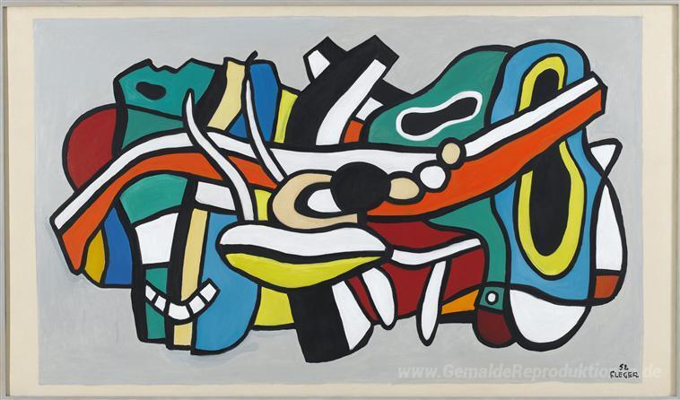 Wir bieten Ihnen eine handgefertigte Reproduktion auf Leinwand des berühmten Kunstwerks 'Projekt für ein Wandbild' von Fernand Leger, aus dem Reproduktionsmuseum.