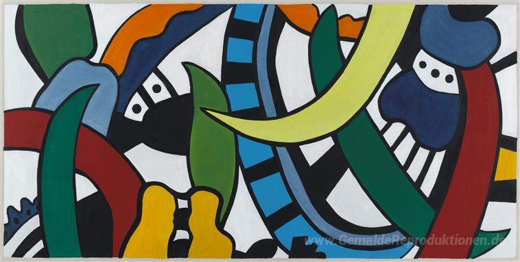 Wir bieten Ihnen eine handgefertigte Reproduktion auf Leinwand des berühmten Kunstwerks 'Projekt für ein Wandbild Vulcania' von Fernand Leger, aus dem Reproduktionsmuseum.