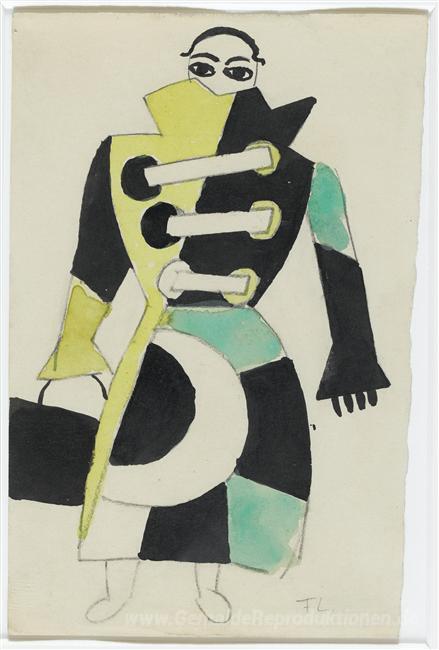 Wir bieten Ihnen eine handgefertigte Reproduktion auf Leinwand des berühmten Kunstwerks 'Projekt für weibliche Tracht Skating Rink' von Fernand Leger, aus dem Reproduktionsmuseum.