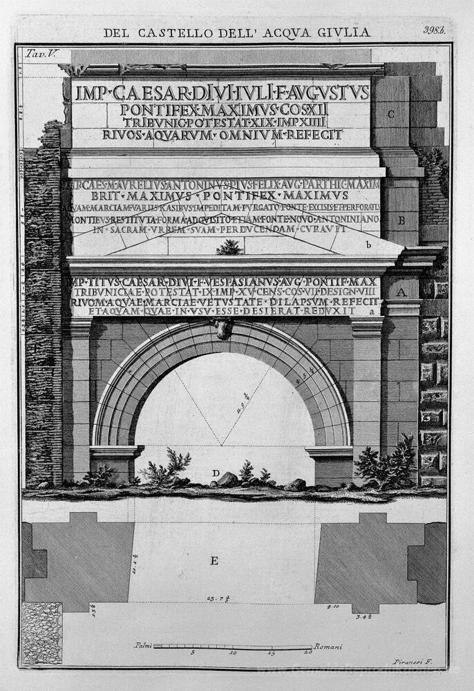 Wir bieten Ihnen eine handgefertigte Reproduktion auf Leinwand des berühmten Kunstwerks 'Riss und Aufriss des Denkmals des Waters und Julia Marcia Tepula' von Giovanni Battista Piranesi, aus dem Reproduktionsmuseum.