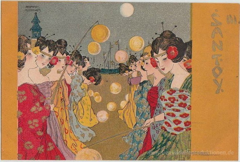Wir bieten Ihnen eine handgefertigte Reproduktion auf Leinwand des berühmten Kunstwerks 'Santoy' von Raphael Kirchner, aus dem Reproduktionsmuseum.