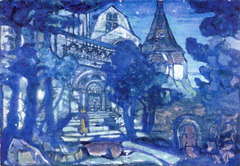 Wir bieten Ihnen eine handgefertigte Reproduktion auf Leinwand des berühmten Kunstwerks 'Schloss von König Marke' von Nicholas Roerich, aus dem Reproduktionsmuseum.