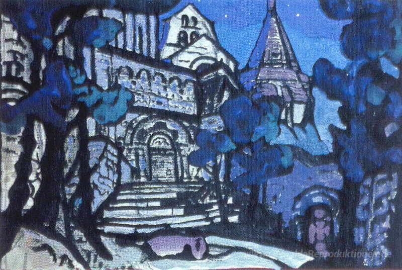 Wir bieten Ihnen eine handgefertigte Reproduktion auf Leinwand des berühmten Kunstwerks 'Schloss von König Marke' von Nicholas Roerich, aus dem Reproduktionsmuseum.