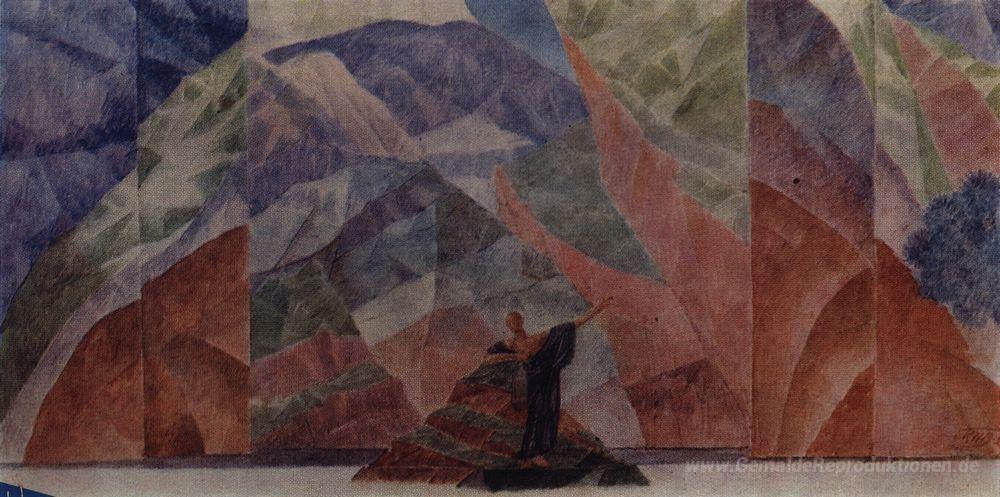 Wir bieten Ihnen eine handgefertigte Reproduktion auf Leinwand des berühmten Kunstwerks 'Set Design-Prolog zu der Inszenierung des Satans Tagebuch (von L' von Kuzma Petrov-Vodkin, aus dem Reproduktionsmuseum.