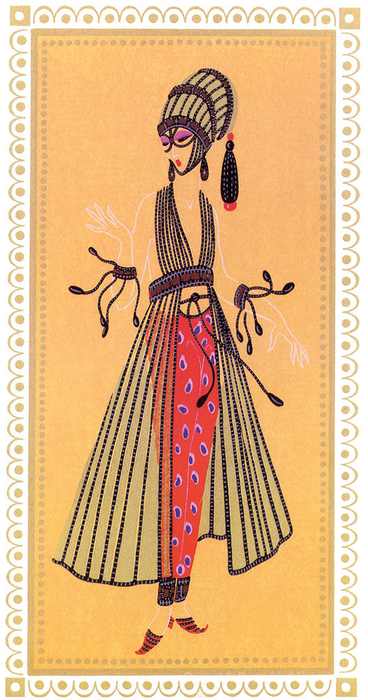 Wir bieten Ihnen eine handgefertigte Reproduktion auf Leinwand des berühmten Kunstwerks 'Sheerazade, Calyph Lieblings' von Erte, aus dem Reproduktionsmuseum.