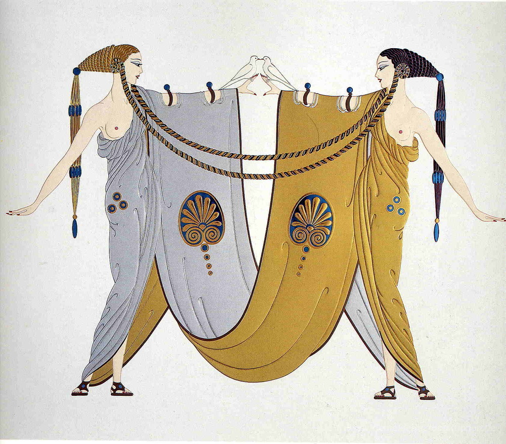 Wir bieten Ihnen eine handgefertigte Reproduktion auf Leinwand des berühmten Kunstwerks 'Sisters' von Erte, aus dem Reproduktionsmuseum.