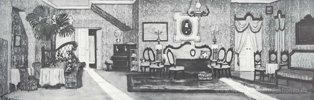 Wir bieten Ihnen eine handgefertigte Reproduktion auf Leinwand des berühmten Kunstwerks 'Sketch von Gorkis Stück "Egor Bulychov und anderer. Hochrot Essz' von Konstantin Yuon, aus dem Reproduktionsmuseum.