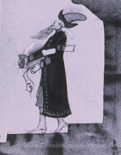 Wir bieten Ihnen eine handgefertigte Reproduktion auf Leinwand des berühmten Kunstwerks 'Sketch von Kostümen für "Märchen vom Zaren Saltan"' von Nicholas Roerich, aus dem Reproduktionsmuseum.