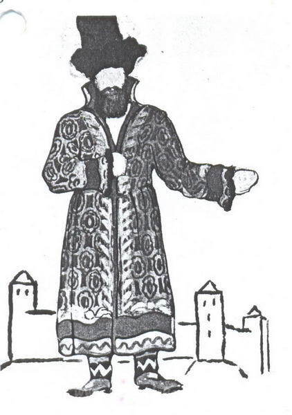 Wir bieten Ihnen eine handgefertigte Reproduktion auf Leinwand des berühmten Kunstwerks 'Sketch von Kostümen für "Märchen vom Zaren Saltan"' von Nicholas Roerich, aus dem Reproduktionsmuseum.
