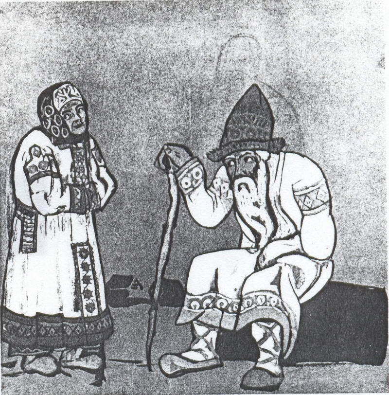 Wir bieten Ihnen eine handgefertigte Reproduktion auf Leinwand des berühmten Kunstwerks 'Sketch von Kostümen für "Schneewittchen"' von Nicholas Roerich, aus dem Reproduktionsmuseum.