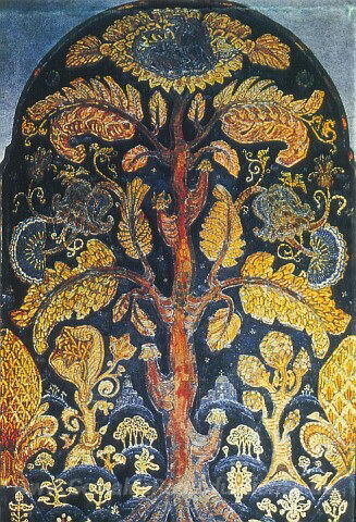 Wir bieten Ihnen eine handgefertigte Reproduktion auf Leinwand des berühmten Kunstwerks 'Skizze des Mosaiks, um das Denkmal für Kuinji' von Nicholas Roerich, aus dem Reproduktionsmuseum.