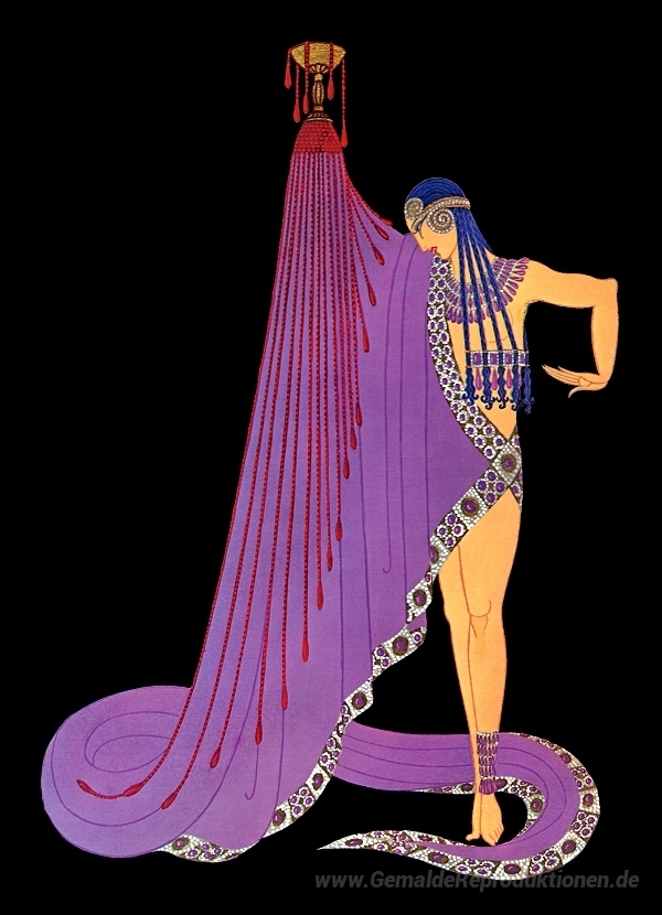 Wir bieten Ihnen eine handgefertigte Reproduktion auf Leinwand des berühmten Kunstwerks 'Sklave der Salome, George Whites Skandale' von Erte, aus dem Reproduktionsmuseum.