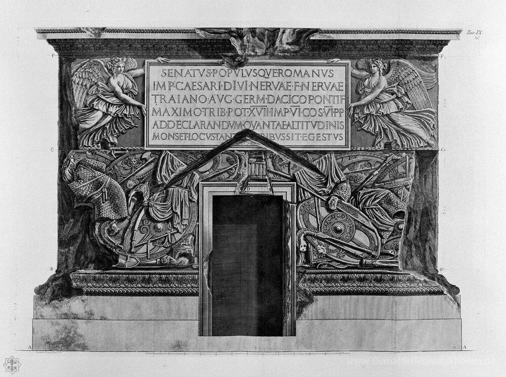 Wir bieten Ihnen eine handgefertigte Reproduktion auf Leinwand des berühmten Kunstwerks 'Sockel Trajan`s Spalte' von Giovanni Battista Piranesi, aus dem Reproduktionsmuseum.