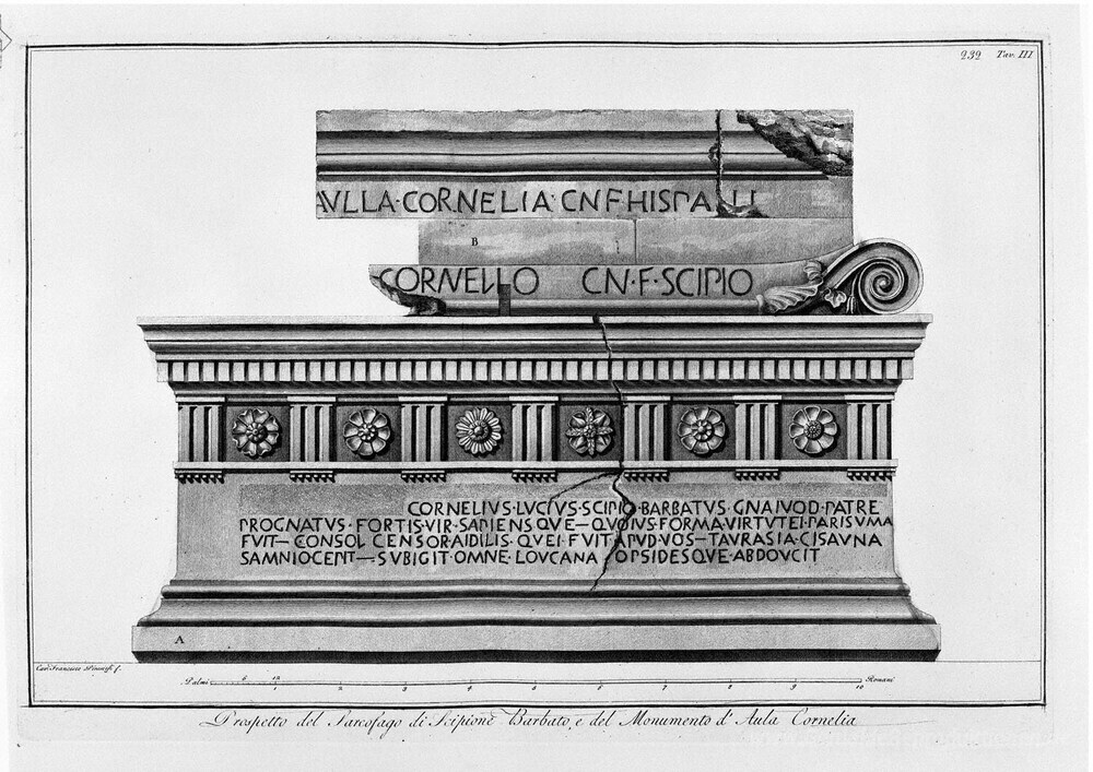 Wir bieten Ihnen eine handgefertigte Reproduktion auf Leinwand des berühmten Kunstwerks 'Statement der Sarkophag von Scipio Barbato und dem Denkmal von C' von Giovanni Battista Piranesi, aus dem Reproduktionsmuseum.