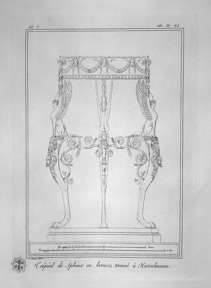 Wir bieten Ihnen eine handgefertigte Reproduktion auf Leinwand des berühmten Kunstwerks 'Stativ mit Sphinxen, in Herculaneum gefunden (inkl. Im Umriss)' von Giovanni Battista Piranesi, aus dem Reproduktionsmuseum.