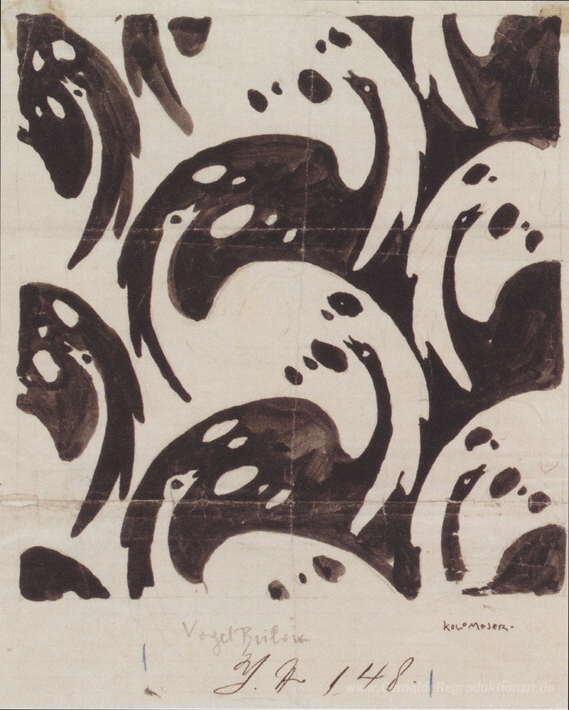 Wir bieten Ihnen eine handgefertigte Reproduktion auf Leinwand des berühmten Kunstwerks 'Stoff-Design mit Vögeln für Backhausen' von Koloman Moser, aus dem Reproduktionsmuseum.