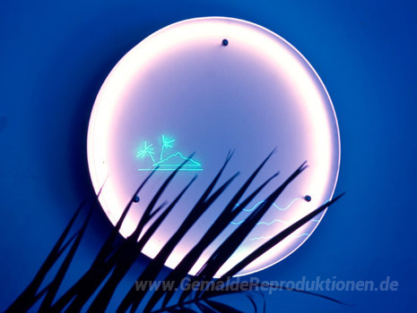 Wir bieten Ihnen eine handgefertigte Reproduktion auf Leinwand des berühmten Kunstwerks 'Sun & Insel' von Nanda Vigo, aus dem Reproduktionsmuseum.