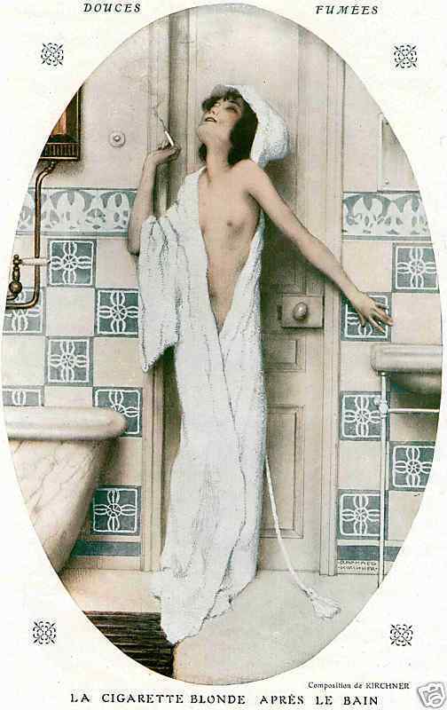 Wir bieten Ihnen eine handgefertigte Reproduktion auf Leinwand des berühmten Kunstwerks 'Sweet Smoke' von Raphael Kirchner, aus dem Reproduktionsmuseum.