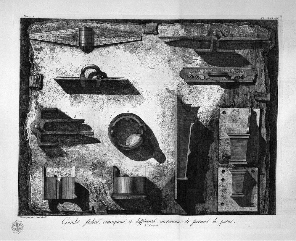 Wir bieten Ihnen eine handgefertigte Reproduktion auf Leinwand des berühmten Kunstwerks 'Türbeschläge in Pompeji' von Giovanni Battista Piranesi, aus dem Reproduktionsmuseum.