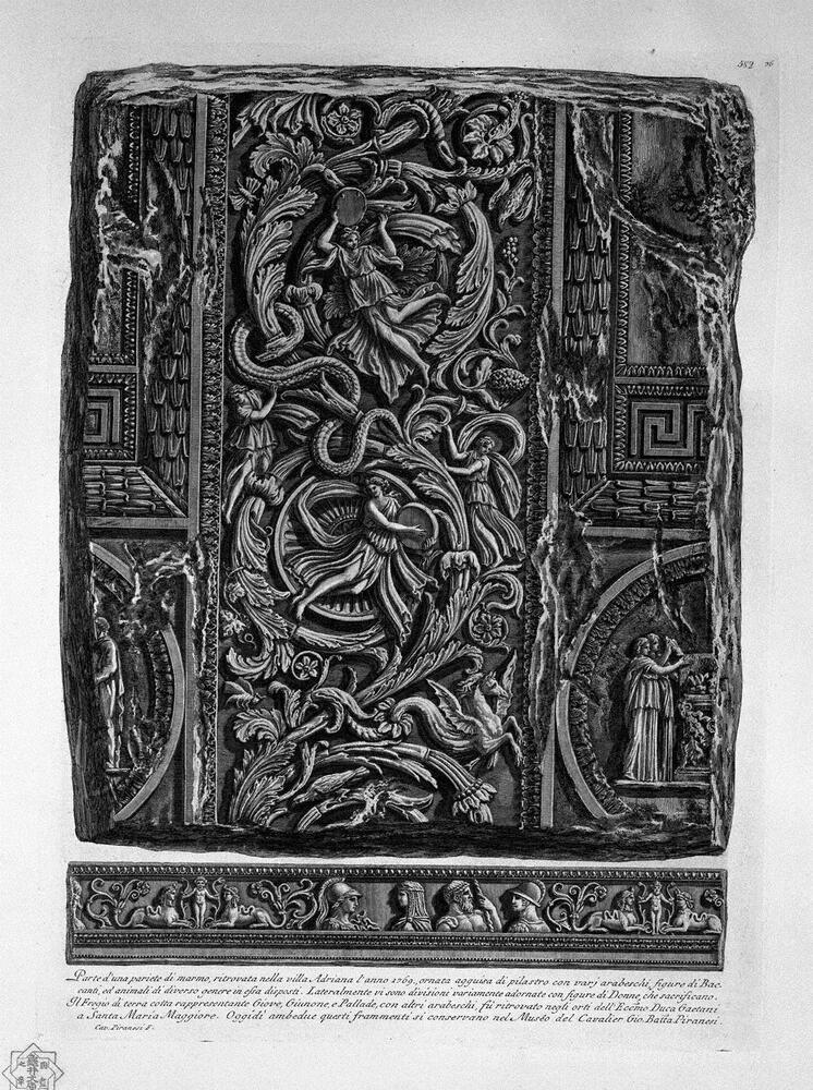 Wir bieten Ihnen eine handgefertigte Reproduktion auf Leinwand des berühmten Kunstwerks 'Teil einer Wand aus Marmor in Titiwangsa, Villa fand im Jahre 17' von Giovanni Battista Piranesi, aus dem Reproduktionsmuseum.