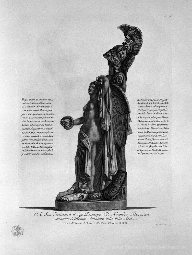 Wir bieten Ihnen eine handgefertigte Reproduktion auf Leinwand des berühmten Kunstwerks 'Trophy der antiken Marmorclementino im Vatikan-Museum, das im Ja' von Giovanni Battista Piranesi, aus dem Reproduktionsmuseum.