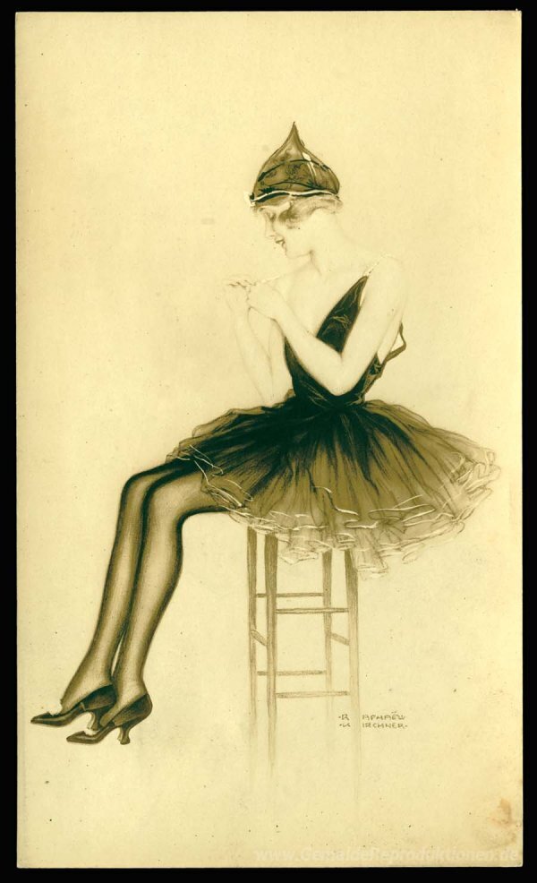Wir bieten Ihnen eine handgefertigte Reproduktion auf Leinwand des berühmten Kunstwerks 'Unbekannt' von Raphael Kirchner, aus dem Reproduktionsmuseum.