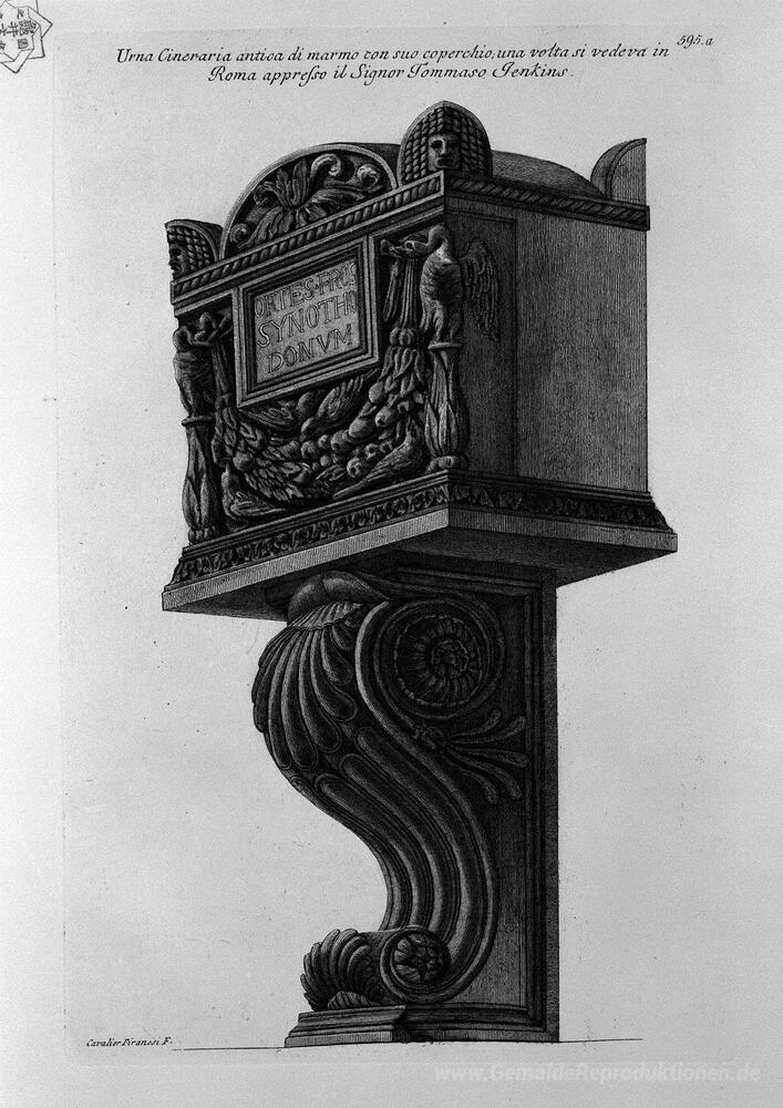 Willkommen auf unserer Plattform für exquisite Ölgemälde, wo Kunst und Eleganz aufeinandertreffen. Entdecken Sie das Meisterwerk Urne aus Marmor mit seinem Deckel von dem renommierten Künstler Giovanni Battista Piranesi. Piranesi, bekannt für seine atemberaubenden Architekturzeichnungen und seine Fähigkeit, die Illusion von Raum und Licht zu kreieren, fängt in diesem Werk die zeitlose Schönheit und die Detailverliebtheit klassischer Formensprache ein.